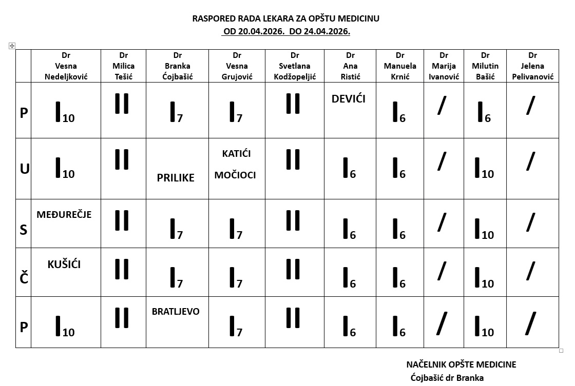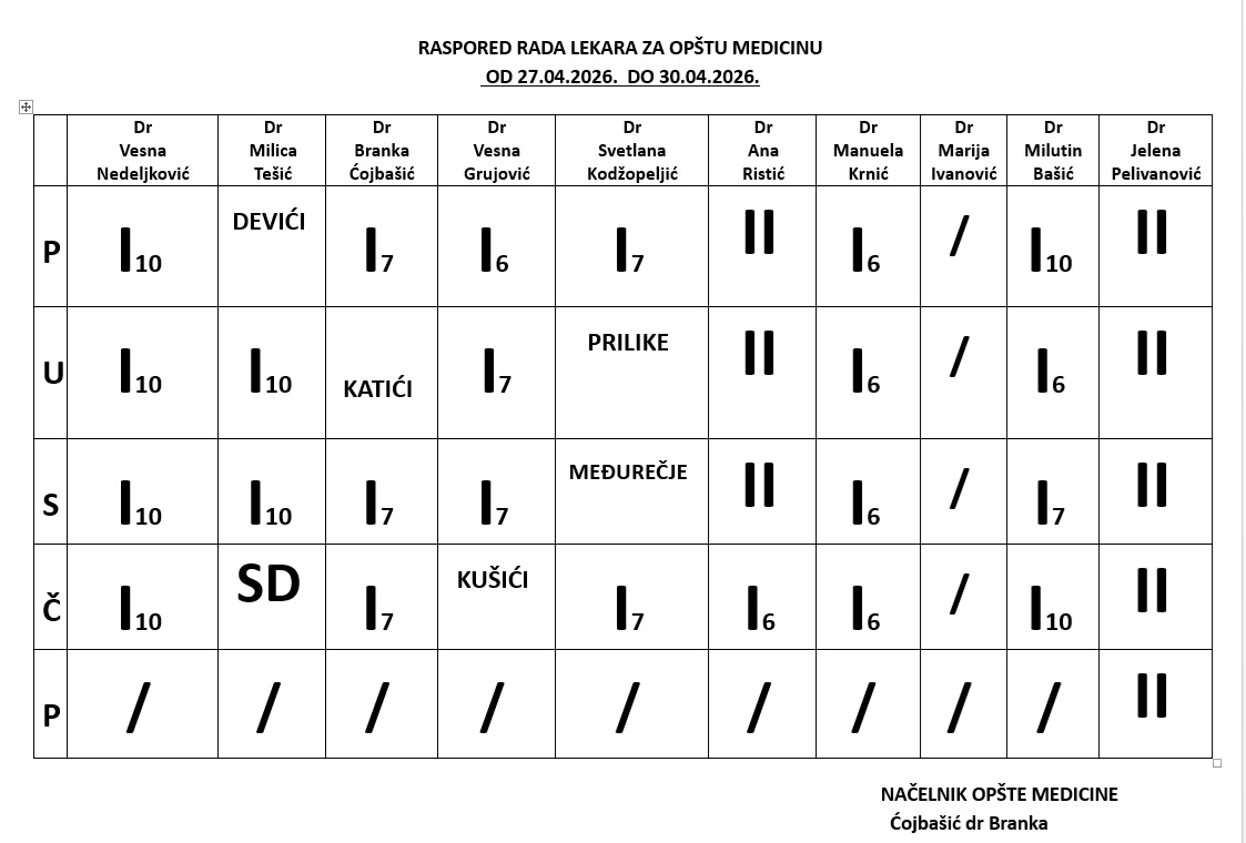 Preuzmite dokument : Raspored rada lekara za opštu medicinu