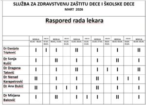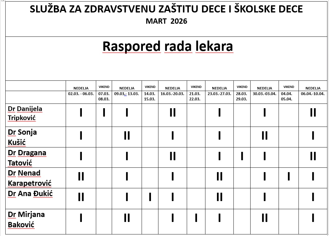 Raspored rada lekera u službi za zdravstvenu zaštitu dece i školske dece za april. October 6, 2025 dzivanjica Aktuelnosti Obaveštavamo Vas da će raspored biti podložan korigovanju o čemu ćete biti blagovremeno obavešteni. Da pogledate raspored rada , potrebno je da kliknete na sliku ispod .
